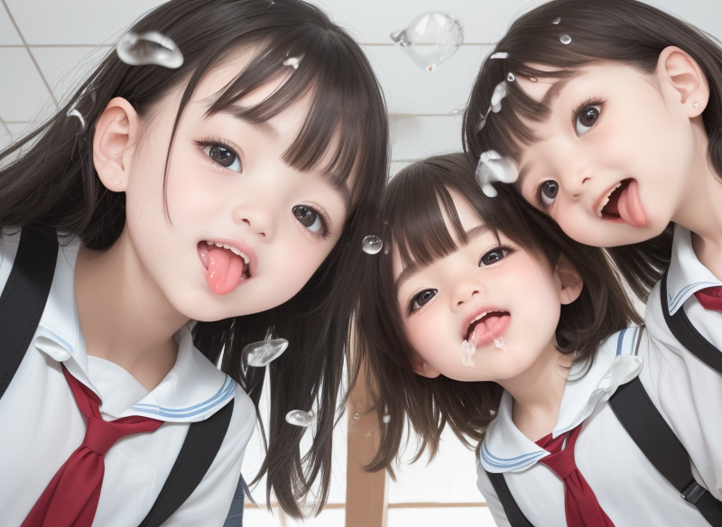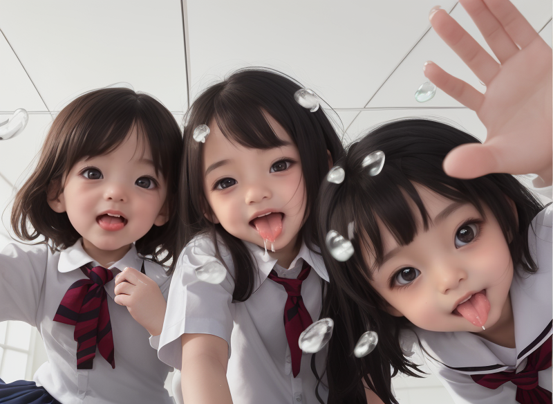 Pfft! Pfft! Tarari… Surrounded by little AI girls, they spit on me en masse
