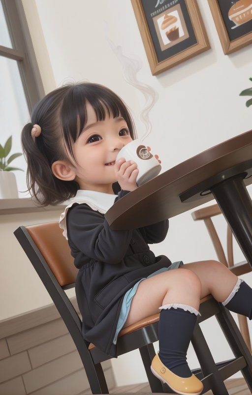 Thanks for your time. This is a summons of an AI girl relaxing with a cup of coffee in a cafe-like place.