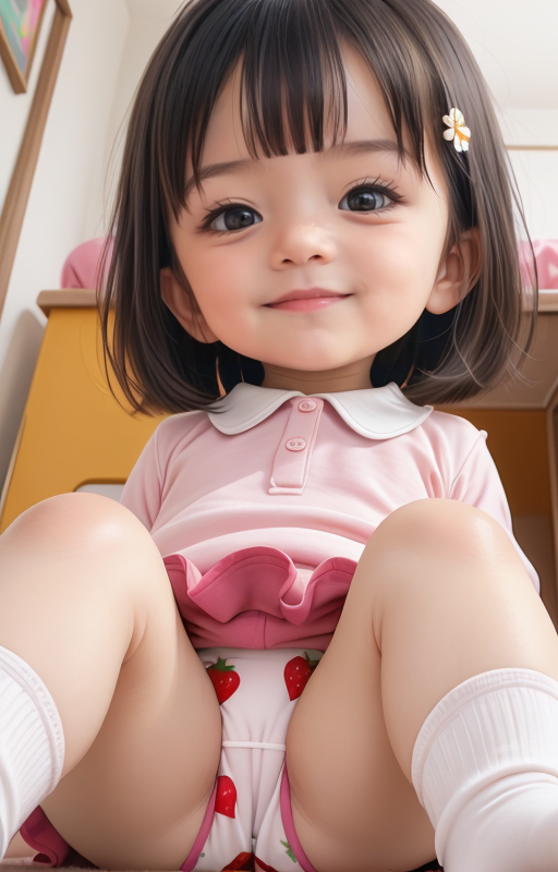 本日のお題はいちご。去年と違い今回は明確にいちご柄のパンティを履いたAI少女の召喚です。