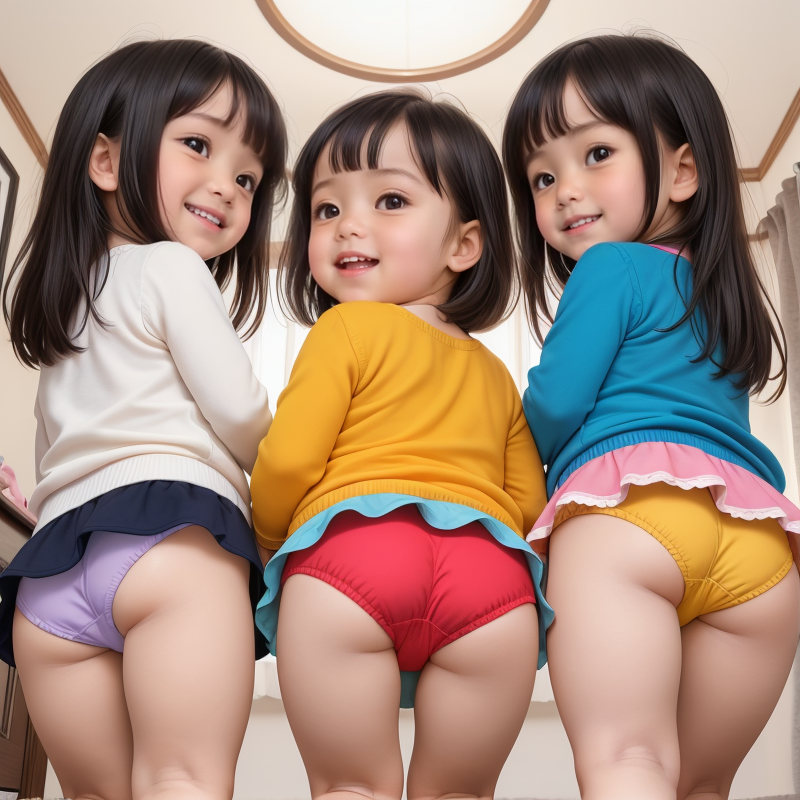 色鮮やかなパンツを見せつけ誘惑するAI少女達