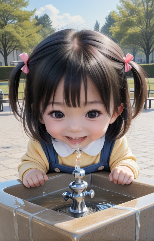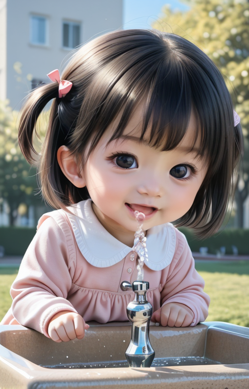 公園の水飲み場で水を飲むAI少女。こういう水道は今でもあるのでしょうか?